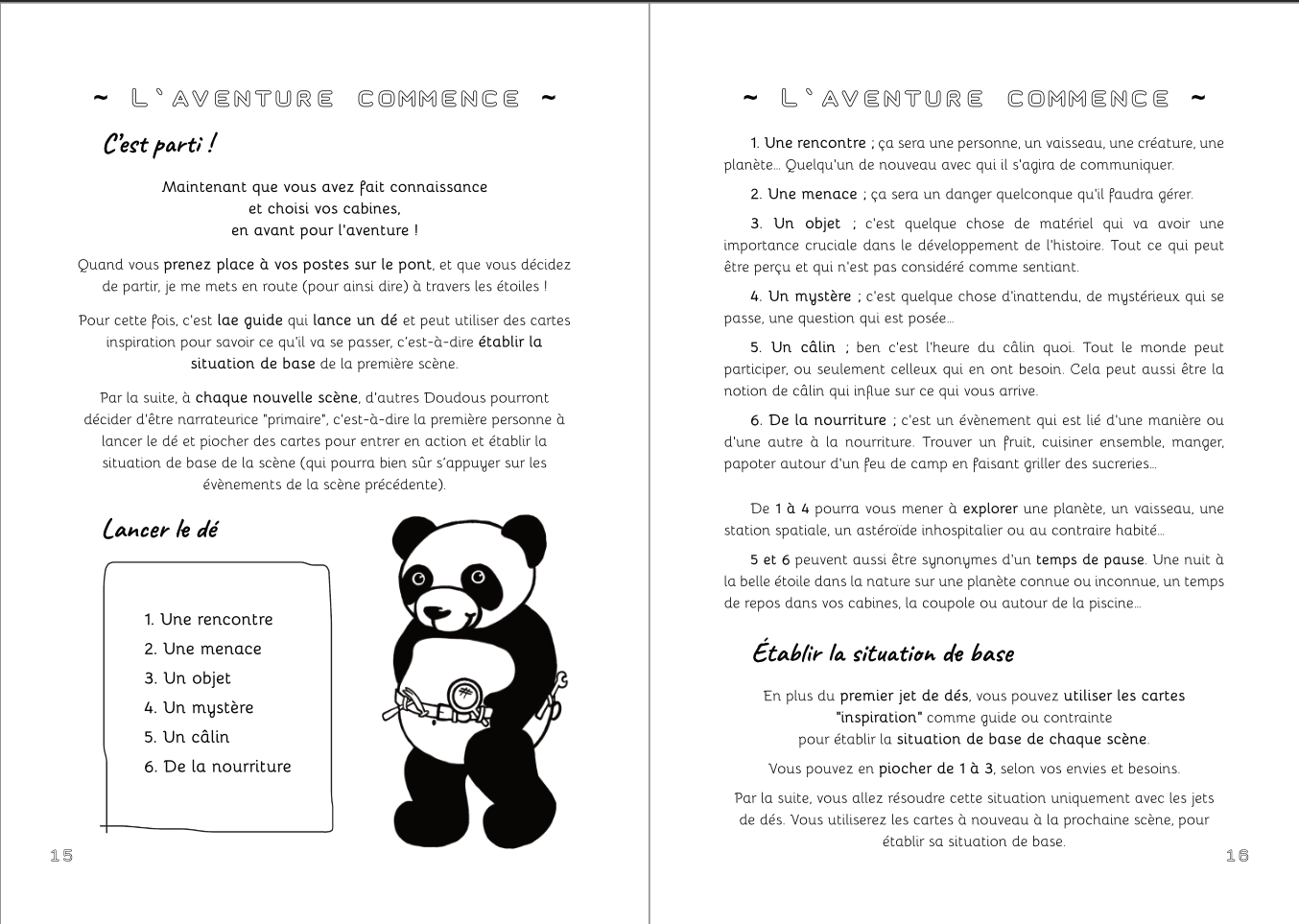L'exploration et les aventures qui en résultent se font en narration partagée avec à un système de dés simple et des éléments pour inspirer, guider voire défier votre imagination, votre créativité et votre sens du fun.